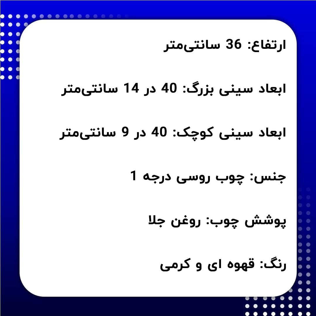 مشخصات فنی استند جای قهوه دو طبقه چوبی به شرح زیر است: