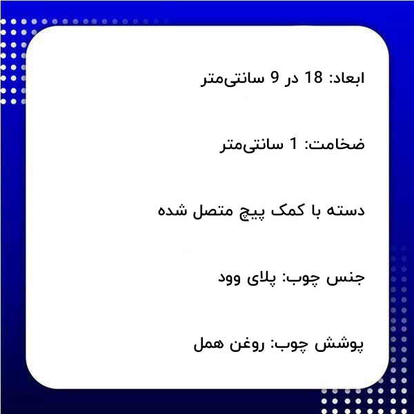 با توجه به جنس چوب طبیعی و دست ساز بودن امکان ترک، گره، تفاوت جزیی در ابعاد و رنگ وجود دارد.