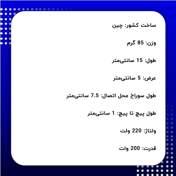 - طول سوراخ محل اتصال: 7.5 سانتیمتر
