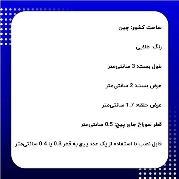 - قطر سوراخ جای پیچ: 0.5 سانتیمتر