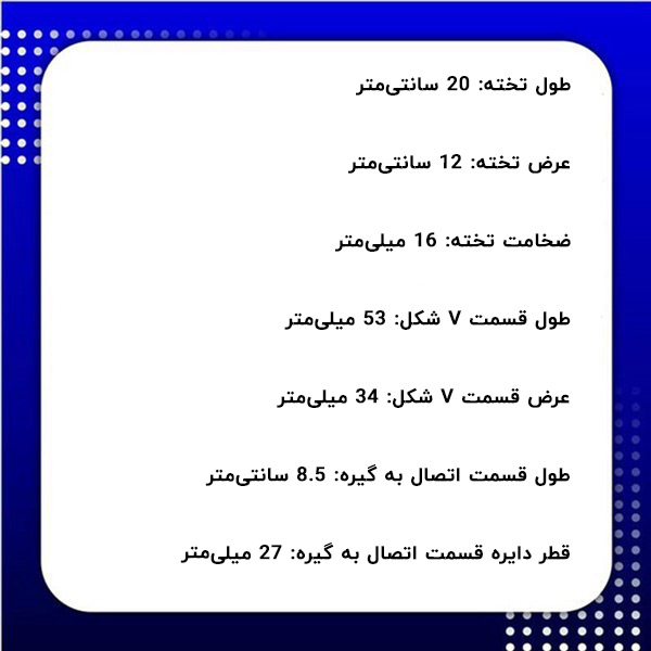 - طول قسمت اتصال به گیره: 8.5 سانتیمتر