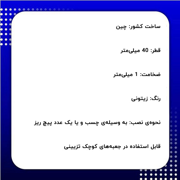 - نحوهی نصب : به وسیلهی چسب و یا یک عدد پیچ ریز