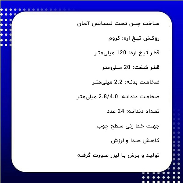 - قطر تیغ اره: 120 میلیمتر