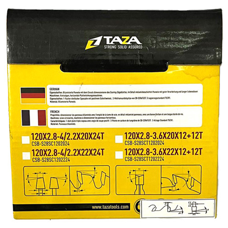 برای اطلاع از قیمت تیغ اره خط زن TAZA مدل CSB-S28SC1202024 لطفا به تگ قیمت محصول مراجعه فرمایید و در صورت نیاز به مشاوره قبل از خرید، با چوبینر تماس حاصل نمایید.