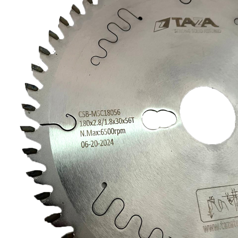 تیغ اره ام دی اف بر تازا با قطر شفت 3 سانتی متر دارای مقاومت بالایی در هنگام برش بوده که ورقهای ام دی اف را به صورت کاملا حرفهای در دستگاههای دورکن میدهد. لازم به ذکر میباشد، دندانههای تیغ اره ام دی اف بر تازا مدل TCG است که به همین جهت برش با کیفیتی در ام دی اف به وجود میآورد. همچنین جنس دندانههای این مدل تیغ اره تازا تنگستن کارباید میباشد که به دلیل مقاومت بالای آن کمتر دچار ساییدگی و لب پر شدن میشود. از ویژگیهای بارز تیغ اره MDF بر TAZA، یکی وجود درزهای انبساطی برای جلوگیری از تاب برداشتن تیغ اره در استفاده زیاد و حرارت بالا؛ و دیگری درزهای صداگیر (نویز گیر) جهت کاهش صدا حین کارکردن و کاهش آلودگی صوتی است.