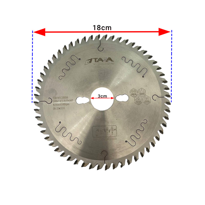 تیغ اره دیسکی تازا ساخت کشور چین و با قطر شفت 3 سانتیمتر توسط شرکت Taza تولید شده است. سایر مشخصات فنی تیغ اره دیسکی 56 دندانه تازا به شرح زیر میباشد: