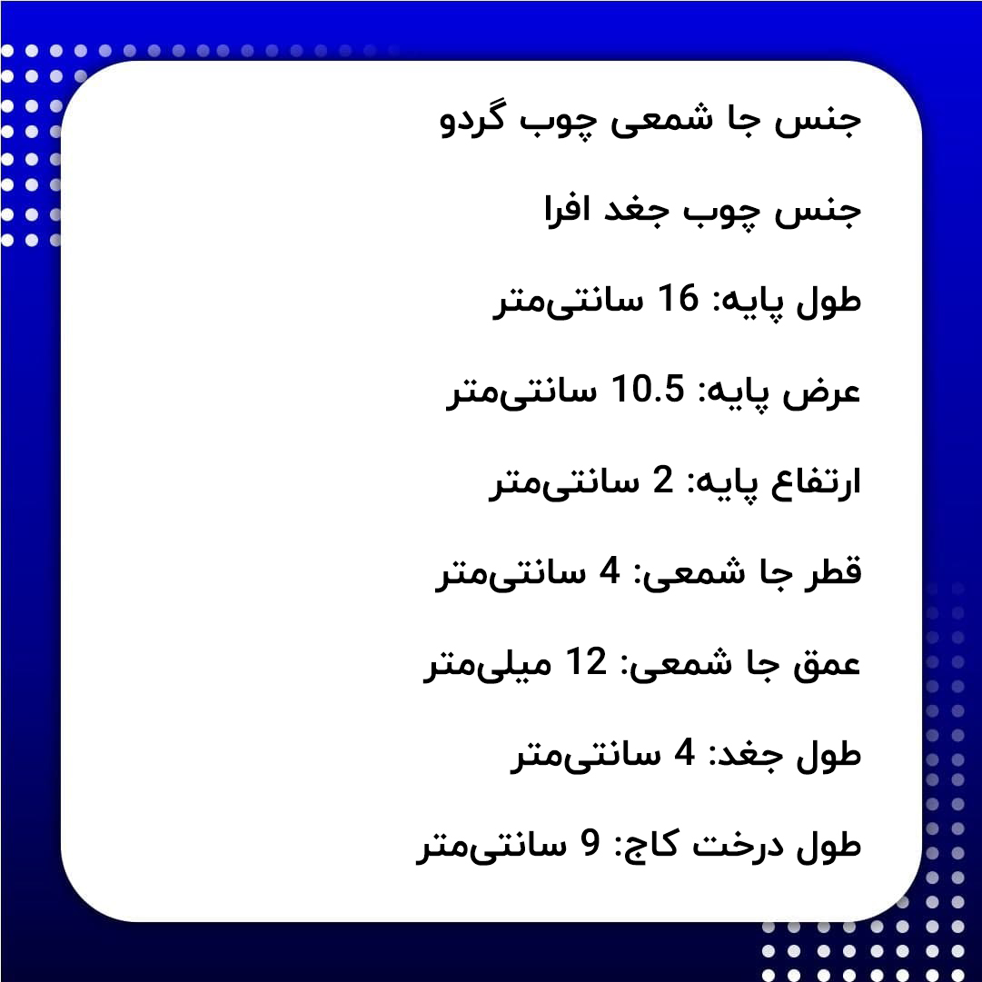- قطر جا شمعی: 4 سانتیمتر