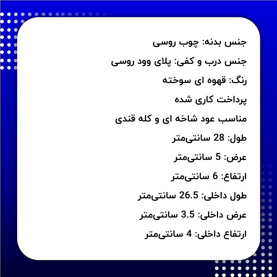 مشخصات فنی جا عودی چوبی به شرح زیر است: