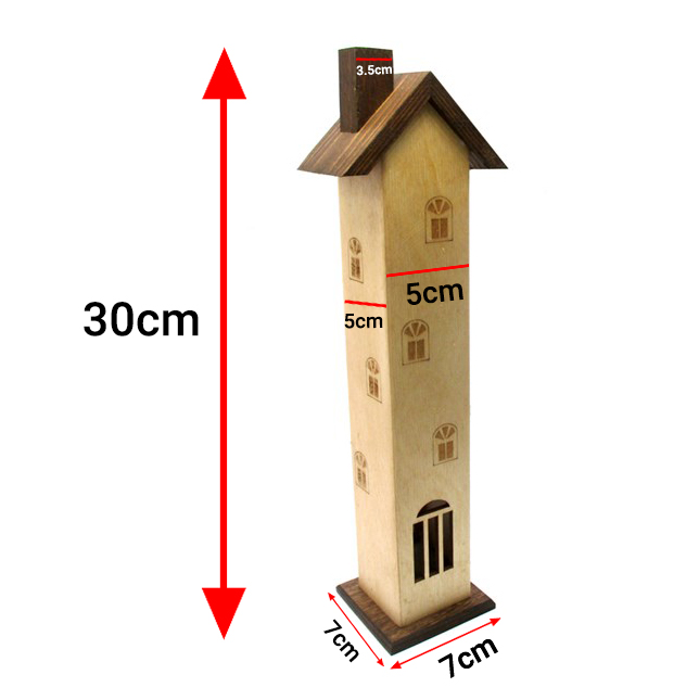 جا عودی طرح خانه شکل فانتزی و ظاهر زیبایی دارد و مناسب عودهای شاخه ای و مخروطی و... است و در کنار شمعدان و ... دکور محیط اطراف شما را زیباتر میکند. لازم به ذکر است که برای استفاده در منازل، دفاتر، فروشگاه ها، زمان یوگا و مدیتیشن این جاعودی یک انتخاب مناسب و جذاب میباشد. برای تولید این مدل جاعودی از چوب روسی، پلای وود روسی ضد آب و رنگ صنعتی و روغن طبیعی استفاده شده است.
