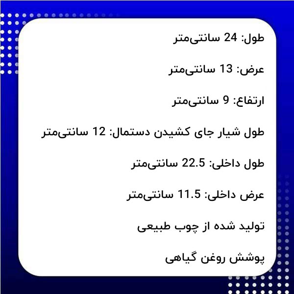 مشخصات فنی جعبه جای دستمال کاغذی به شرح زیر میباشد: