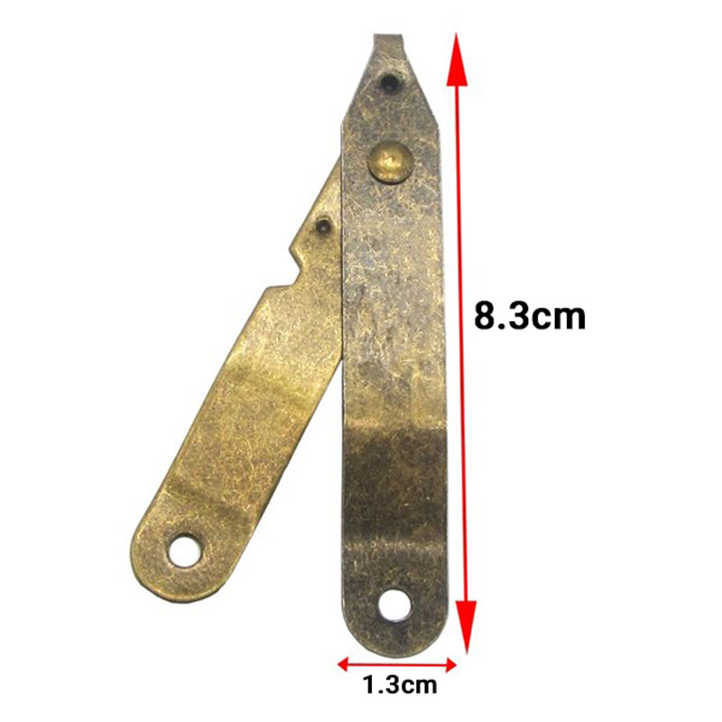 این مدل جک آنتیک درب جعبه از دو قسمت تشکیل شده است که یک بخش آن به درب و بخش دیگری به بدنهی جعبه نصب میشود. برای نصب این نوع جک آنتیک میتوانید از دو عدد پیچ به قطر 0.3 سانتیمتر استفاده نمایید. دیگر مشخصات فنی جک انتیک درب جعبه به شرح زیر میباشد: