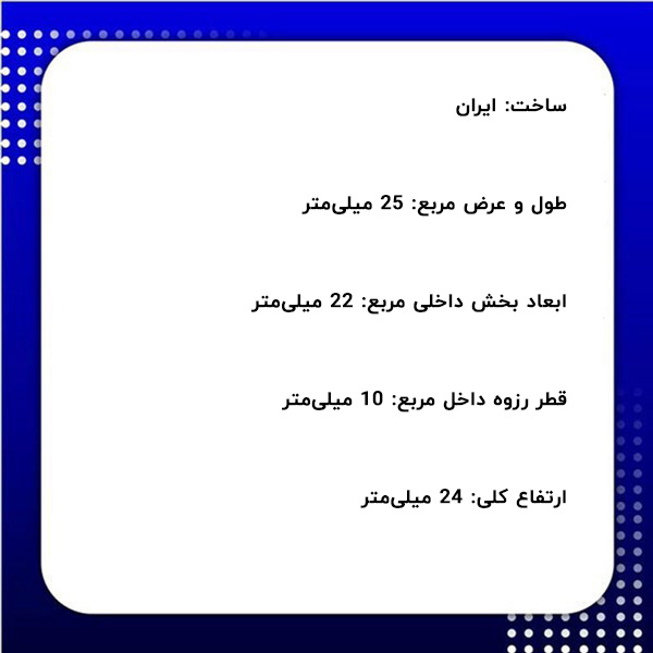 - طول و عرض مربع: 25 میلیمتر