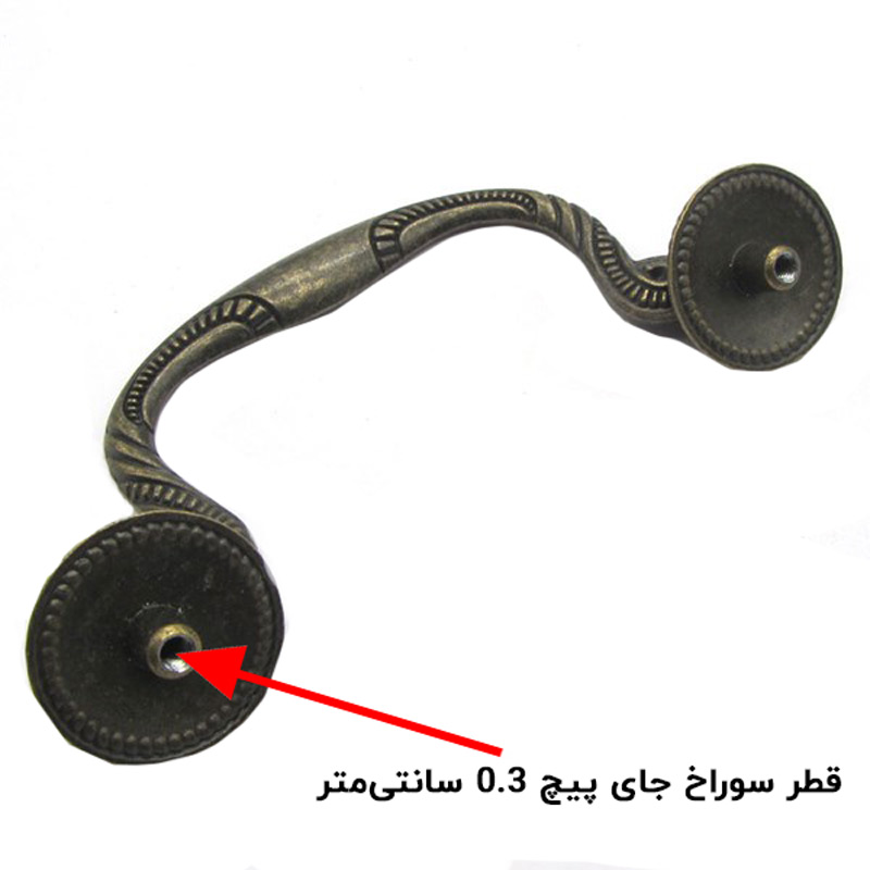 برای نصب این نوع دستگیره آنتیک تزئینی باید از 2 عدد پیچ به قطر 0.3 سانتیمتر استفاده نمایید. به طور کلی این مدل دستگیره آنتیک دارای مشخصاتی به شرح زیر میباشد: