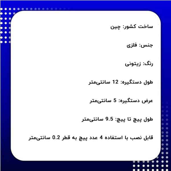 - قابل نصب با استفاده 4 عدد پیچ به قطر 0.2 سانتیمتر