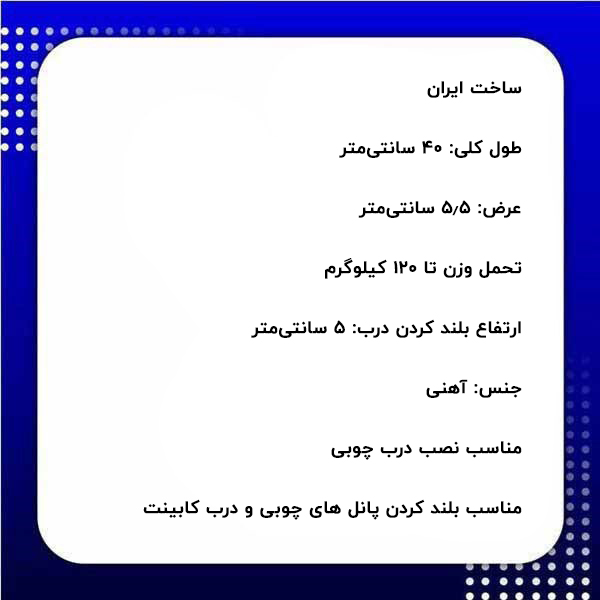 - ارتفاع بلند کردن درب: 5 سانتیمتر
