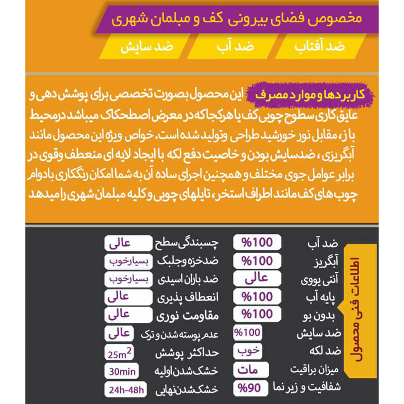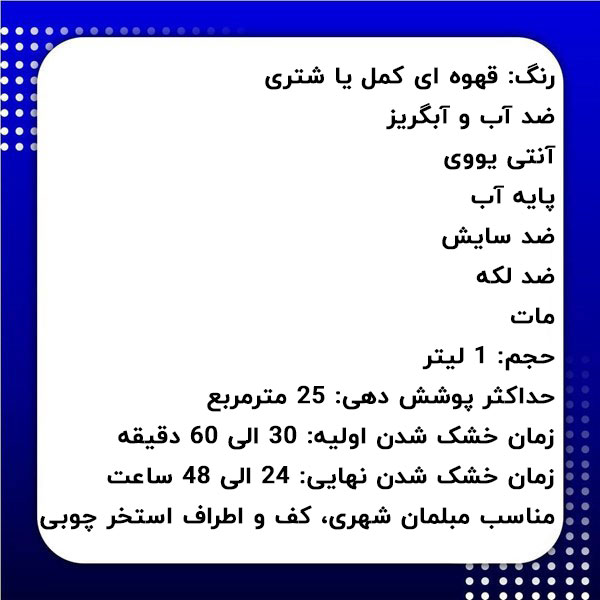 - زمان خشک شدن نهایی: 24 الی 48 ساعت