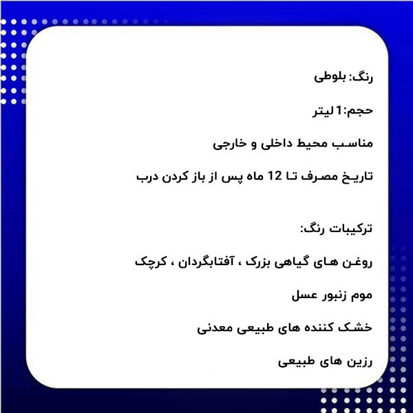 فقط به این نکته توجه داشته باشید که قبل از مصرف خوب هم بزنید و در دمای 5 تا 35 درجه سانتیگراد یعنی دمای معمولی اتاق اجرا شود. برای روشن تر شدن میتوانید با روغن بی رنگ نوبن ترکیب نمایید.