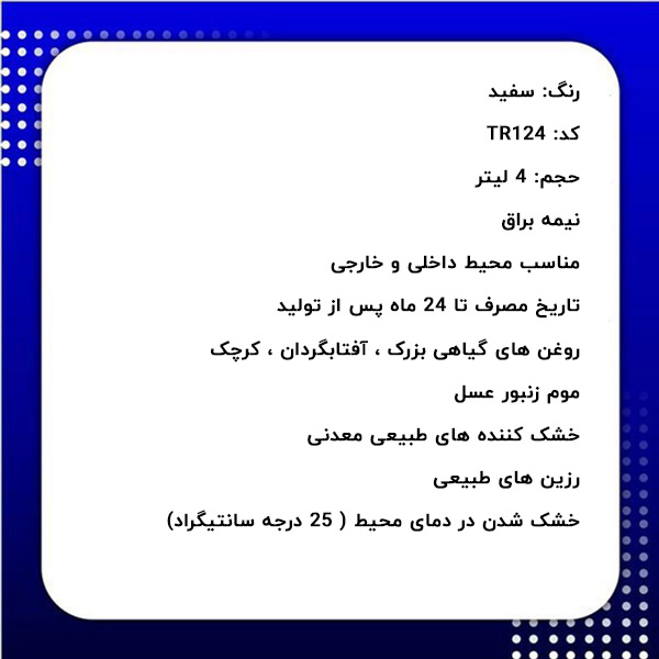 به این نکته توجه داشته باشید که قبل از مصرف خوب هم بزنید و در دمای 5 تا 35 درجه سانتیگراد یعنی دمای معمولی اتاق اجرا شود. برای روشن تر شدن میتوانید با روغن بی رنگ نوبن ترکیب نمایید.