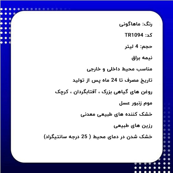فقط به این نکته توجه داشته باشید که قبل از مصرف خوب هم بزنید و در دمای 5 تا 35 درجه سانتیگراد یعنی دمای معمولی اتاق اجرا شود. برای روشن تر شدن میتوانید با روغن بی رنگ نوبن ترکیب نمایید.