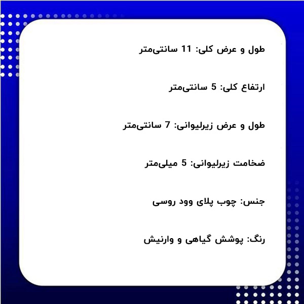 مشخصات فنی زیر لیوانی چوبی به شرح زیر میباشد: