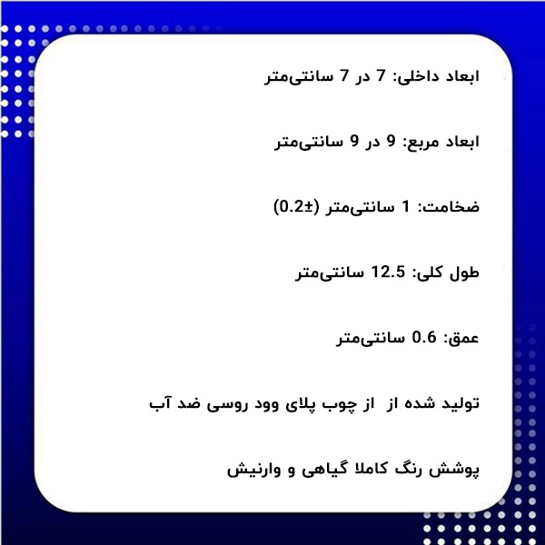- ابعاد داخلی: 7 در 7 سانتیمتر