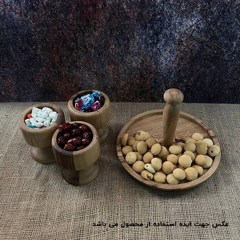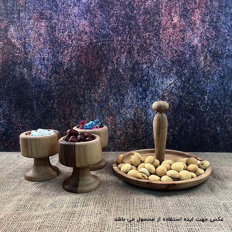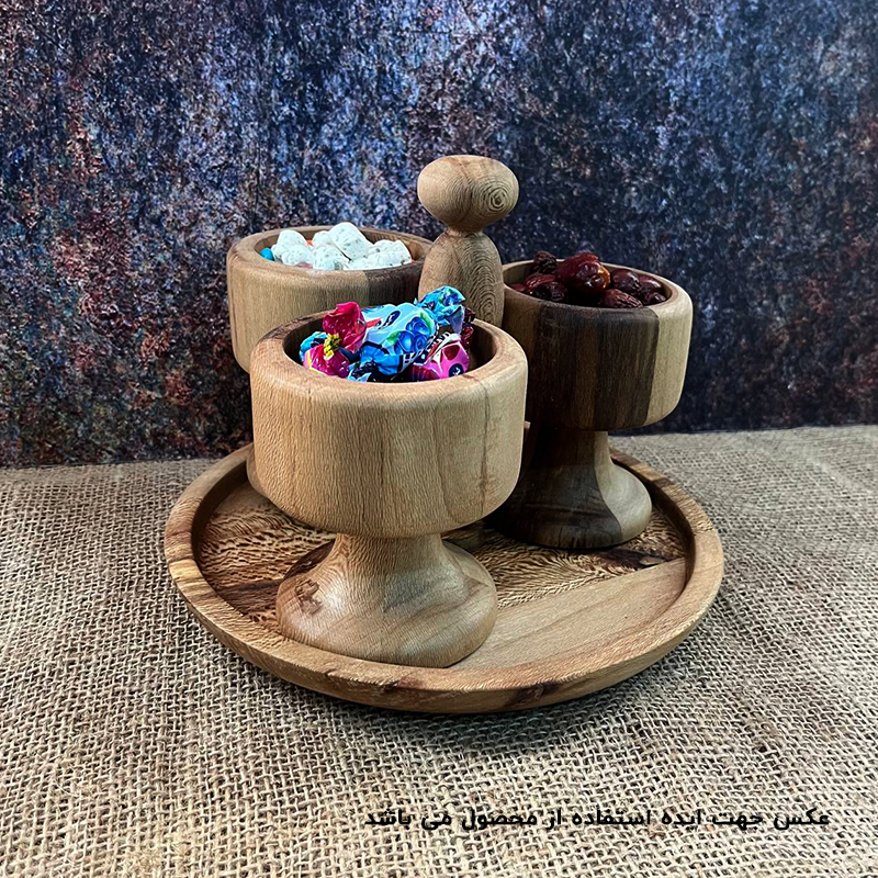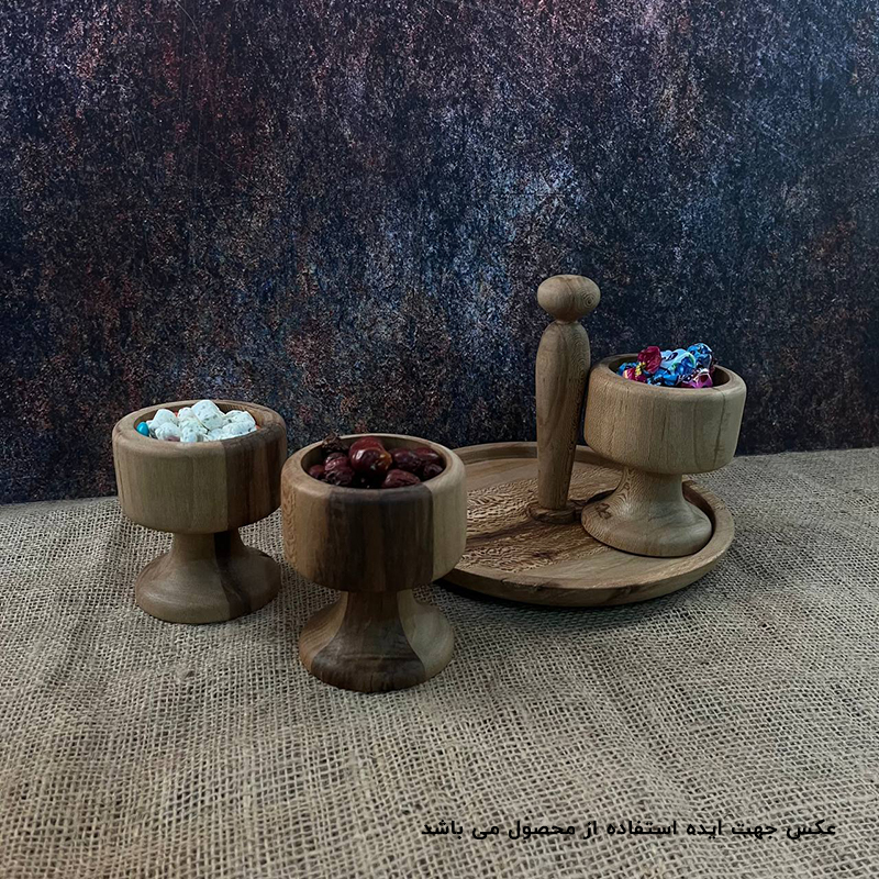 همان طور که در بخش قبل گفته شد ظروف چوبی به سفره و میزهای پذیرایی شما در مناسبت های مختلف همچون عید نوروز، شب یلدا و سایر جشن ها رنگ و لعاب زیباتری میدهند. ست استند و پیاله چوبی پایهدار با طراحی منحصر به فرد خود، جلوهای خاص به سفره و میزهای پذیرایی شما در مناسبتهای مختلف میبخشد. این محصول از چوب باکیفیت چنار ساخته شده و مناسب برای سرو انواع خوراکیها, تنقلات و آجیل و ... است. طراحی پایهدار آن باعث میشود که استفاده از آن آسانتر باشد و همچنین به عنوان یک عنصر دکوری زیبا در فضا عمل کند. لازم به ذکر است که برای دوام ظروف چوبی باید از گرما و حرارت دور باشند, از گذاشتن مواد غذایی گرم و یا حرارت بالا خودداری بفرمایین و هنگام شست و شو از اسفنج نرم استفاده شود همچنین پس از شستن بلافاصله کامل خشک شوند.