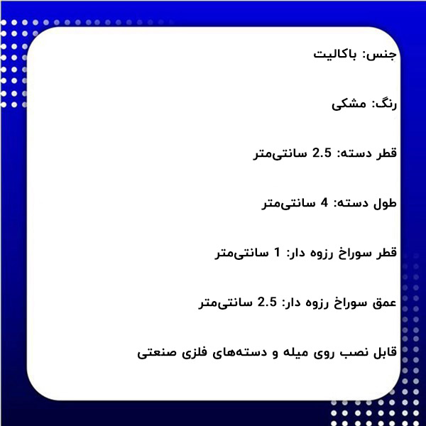 - قطر سوراخ رزوه دار: 1 سانتیمتر