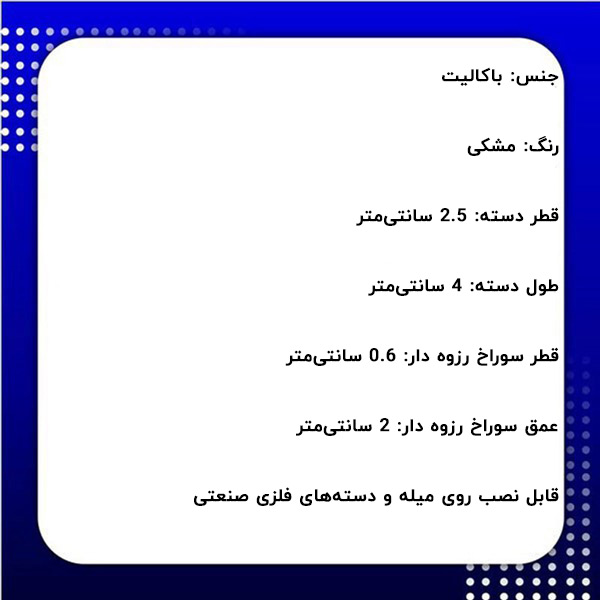 - قطر دسته: 2.5 سانتیمتر