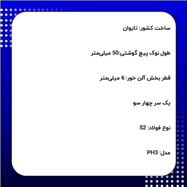 - طول نوک پیچ گوشتی:50 میلیمتر