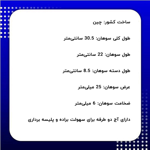 - دارای آج دو طرفه برای سهولت براده و پلیسه برداری