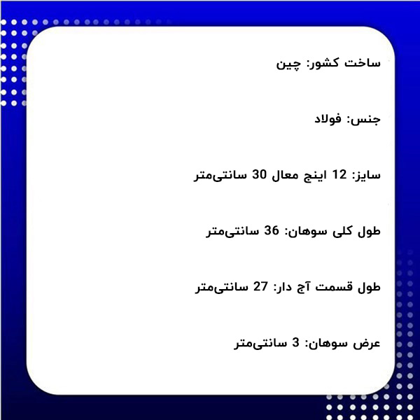 - سایز: 12 اینج معال 30 سانتیمتر