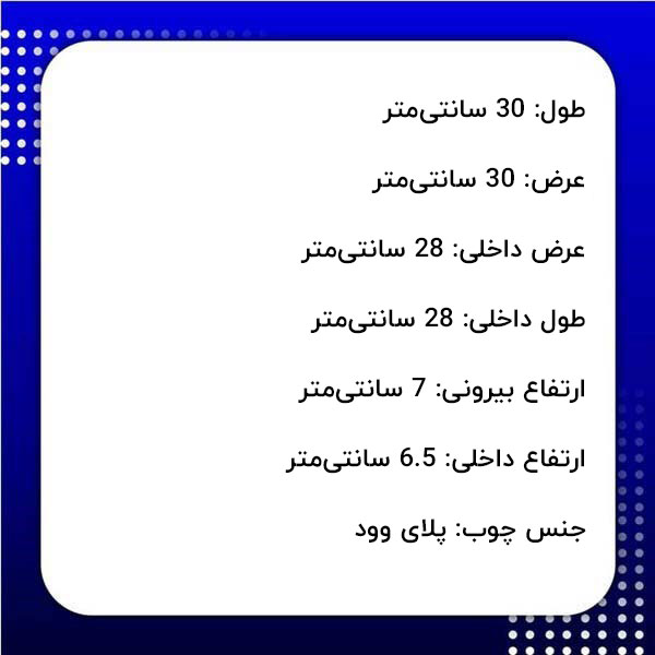 مشخصات فنی سینی چوبی به شرح زیر است: