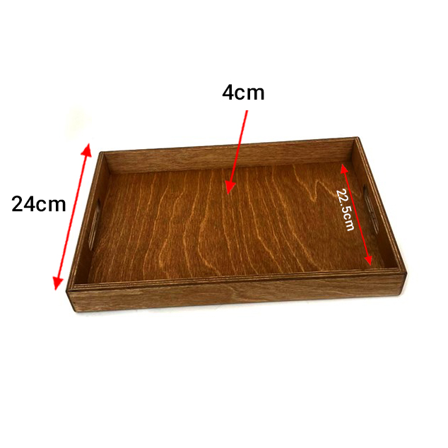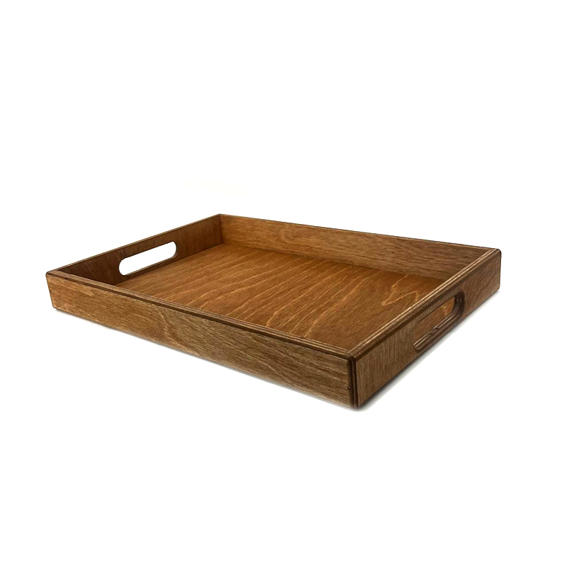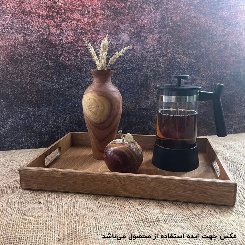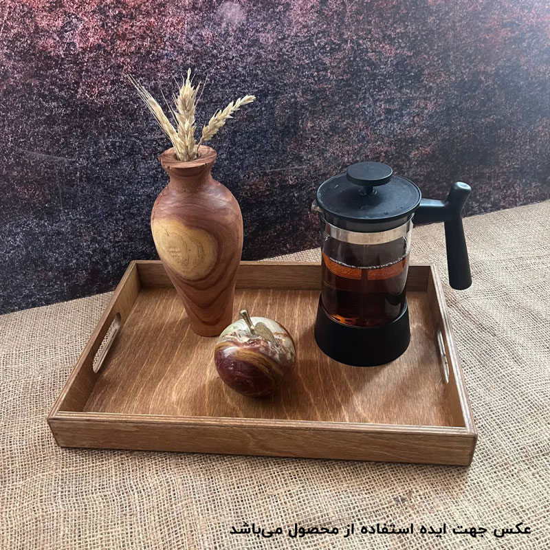 همان طور که در بخش قبل ذکر شد از ظروف چوبی جهت پذیرایی در منازل، رستوران، کافه و محیط کار استفاده میشود که سینی یک نمونه از این ظروف است. سینی مستطیلی چوبی به صورت مستظیل ساخته میشود و علاوه بر پذیرایی از این ظروف میتوان در دکوراسیون منازل استفاده نمود. این مدل سینی دکوری با دسته چوبی زیبا تولید شده است و در ساخت آن از چوب پلای وود روسی ضد آب با پوشش رنگ گیاهی آبگریز خوراکی و وارنیش استفاده شده است. برای محافظت از سینی چوبی مستطیلی بهتر است از شست و شو با ماشین ظرفشویی یا سیم و اسکاچ زبر خودداری کنید و پس از هر بار شستن با دستمال نرم خشک شوند.