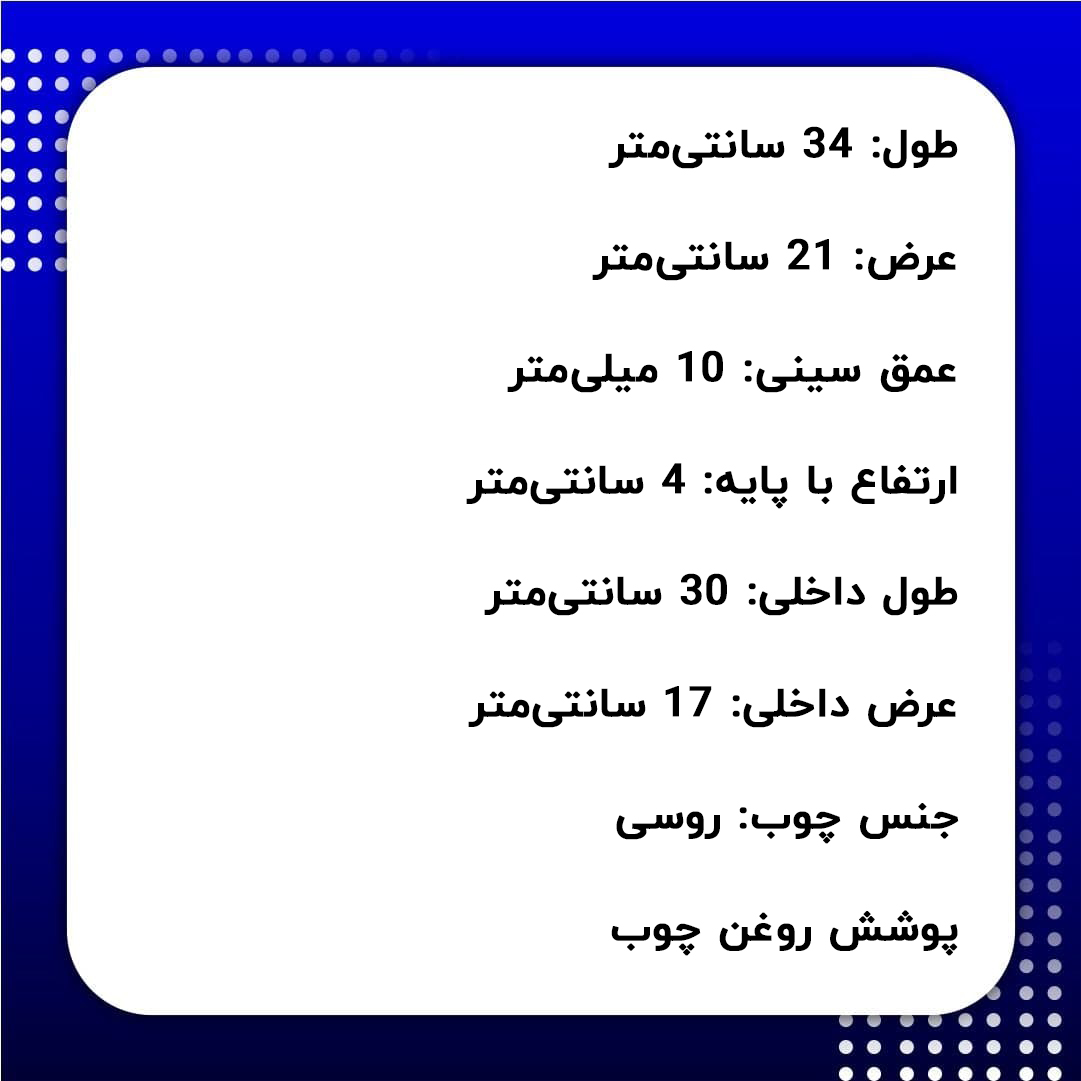 مشخصات فنی سینی چوبی به شرح زیر است: