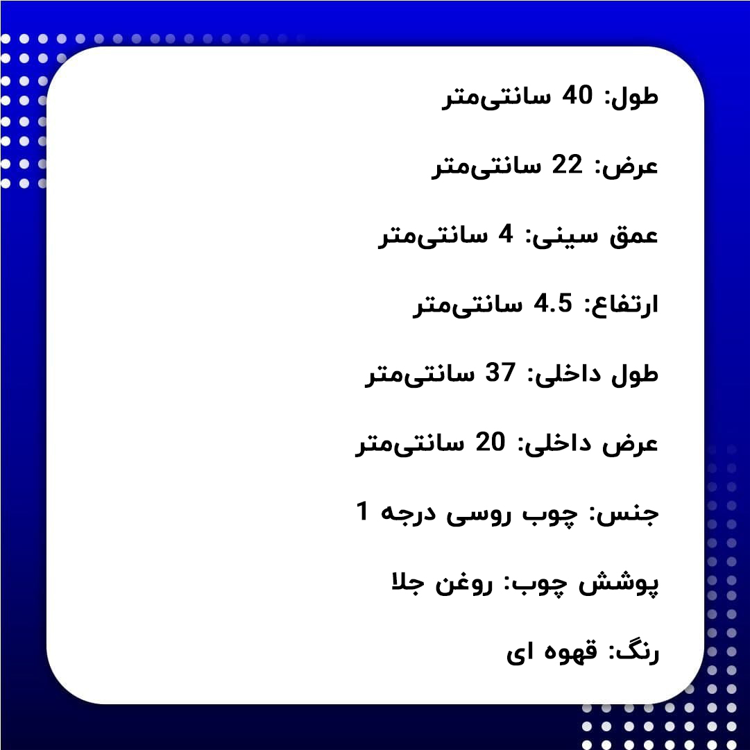 مشخصات فنی سینی چوبی به شرح زیر است: