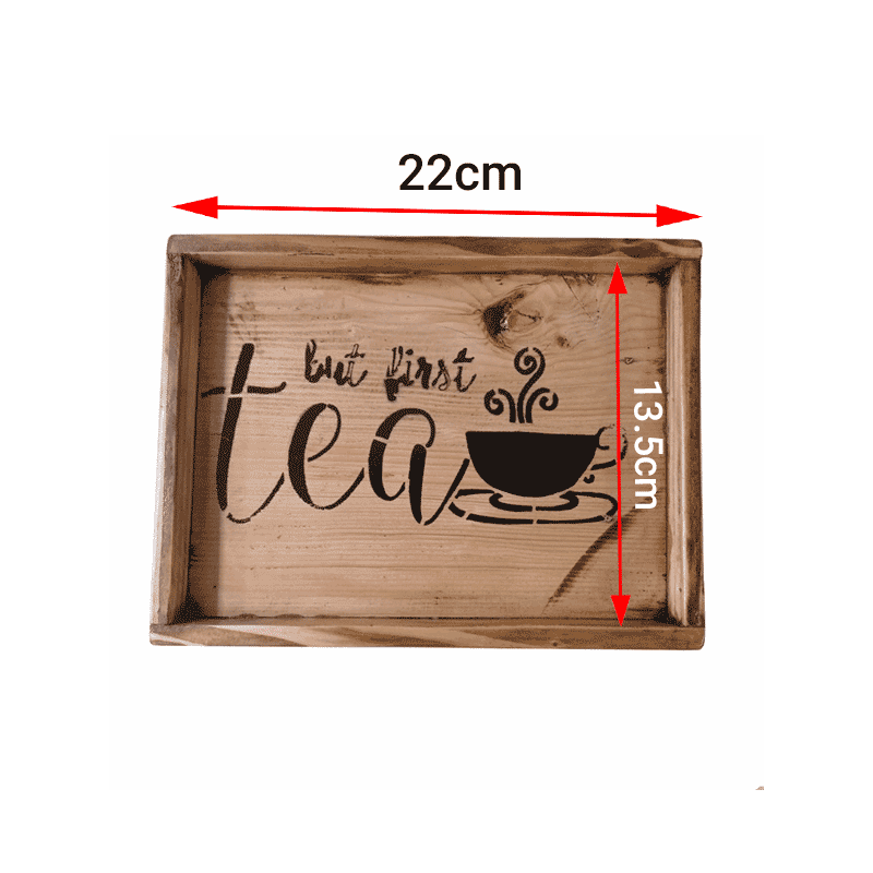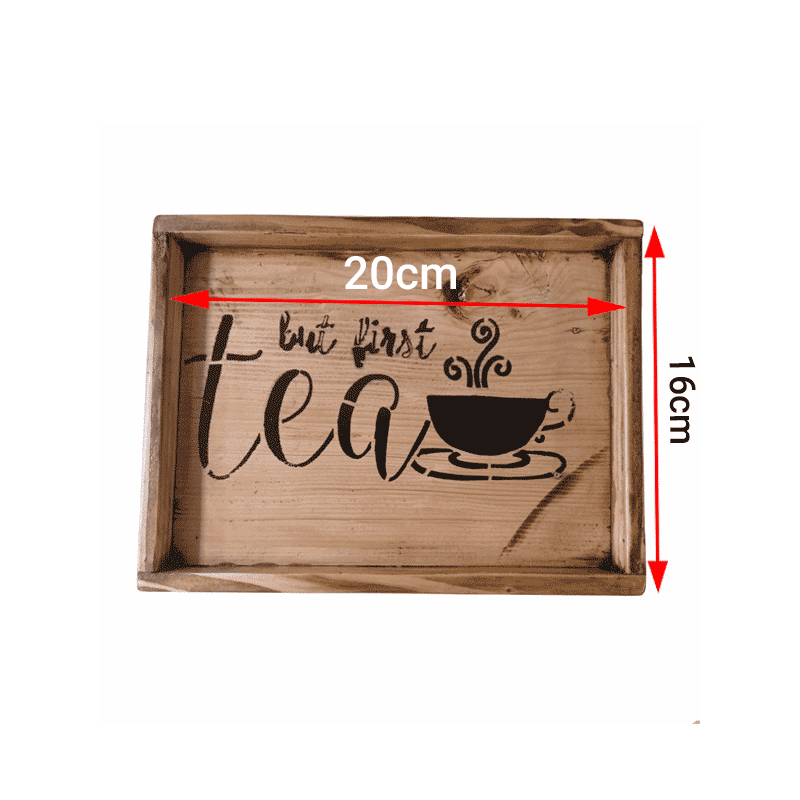 همان طور که در بخش قبل ذکر شد از ظروف چوبی جهت پذیرایی در منازل، رستوران، کافه و محیط کار استفاده میشود که سینی یک نمونه از این ظروف است. سینی چوبی در اشکال هندسی مختلفی از قبیل دایره، مستطیل، مربع و... ساخته میشود و علاوه بر پذیرایی از این ظروف میتوان در دکوراسیون منازل استفاده نمود. سینی دکوری از جنس چوب روسی درجه یک و به صورت مستطیل 22 در 16 سانتیمتر در دو طرح tea و coffee تولید و با روغن گیاهی پوشش دهی شده است. برای تمیز کردن سینی در صورتی که آب بر روی کار ریخته شود دچار آسیب میشود و باید بلافاصله با پارچه نرم خشک شوند.