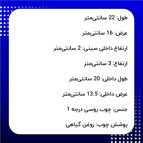 مشخصات فنی سینی چوبی به شرح زیر است: