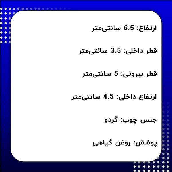 - ارتفاع داخلی: 4.5 سانتیمتر