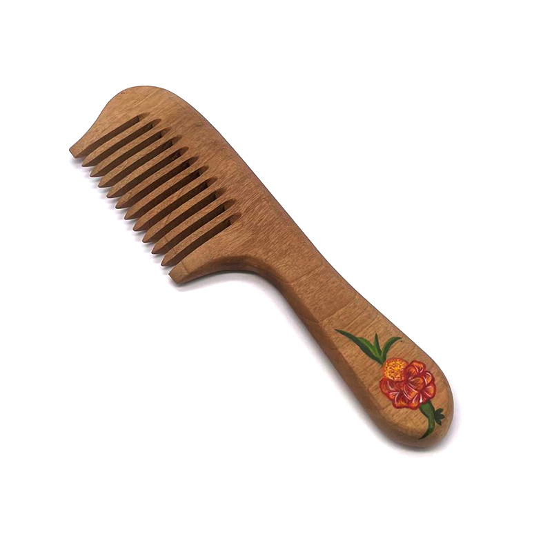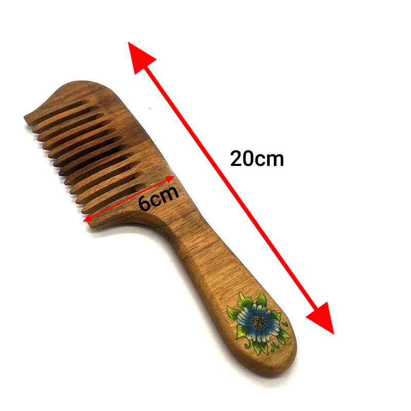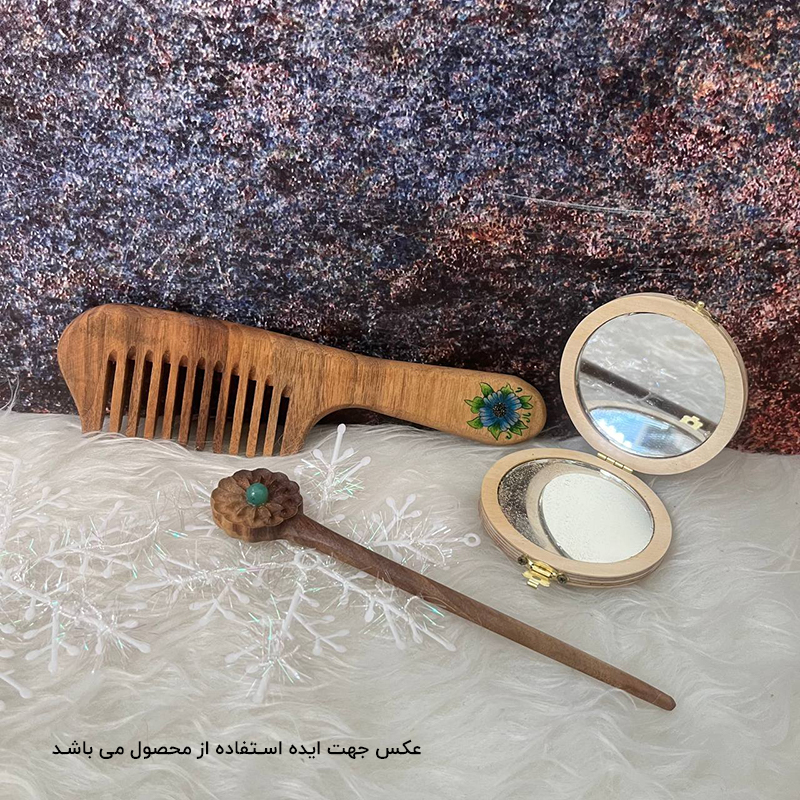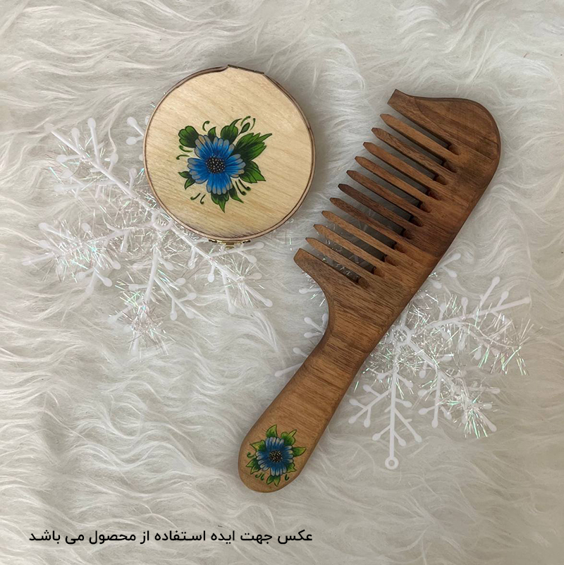 همان طور که در بخش قبل گفته شده شانه چوبی یکی از لوازم شخصی است که با چوب تولید میشود. این مدل شانه از چوب درخت گردو تولید و برای زیباتر شدن با رنگ اکریلیک نقاشی شده است که رنگ ثابت است و پاک نمیشود. برای محافظت از محصول، روغن دو جزئی پرو استفاده شده و با توجه به کیفیتی که دارد به مو آسیبی وارد نمیشود. این مدل شانه چوبی قابل شست و شو است و باید بعد از شسته شدن بلافاصله با پارچه نرم خشک شود.