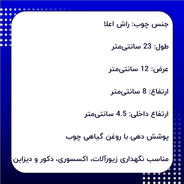 مشخصات فنی جعبه چوب راش اعلا به شرح زیر میباشد: