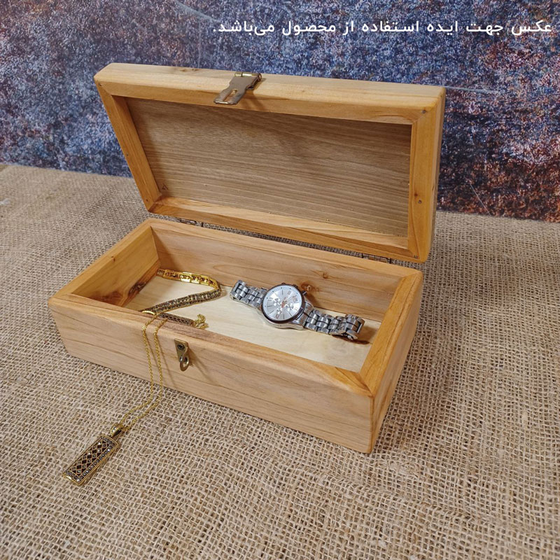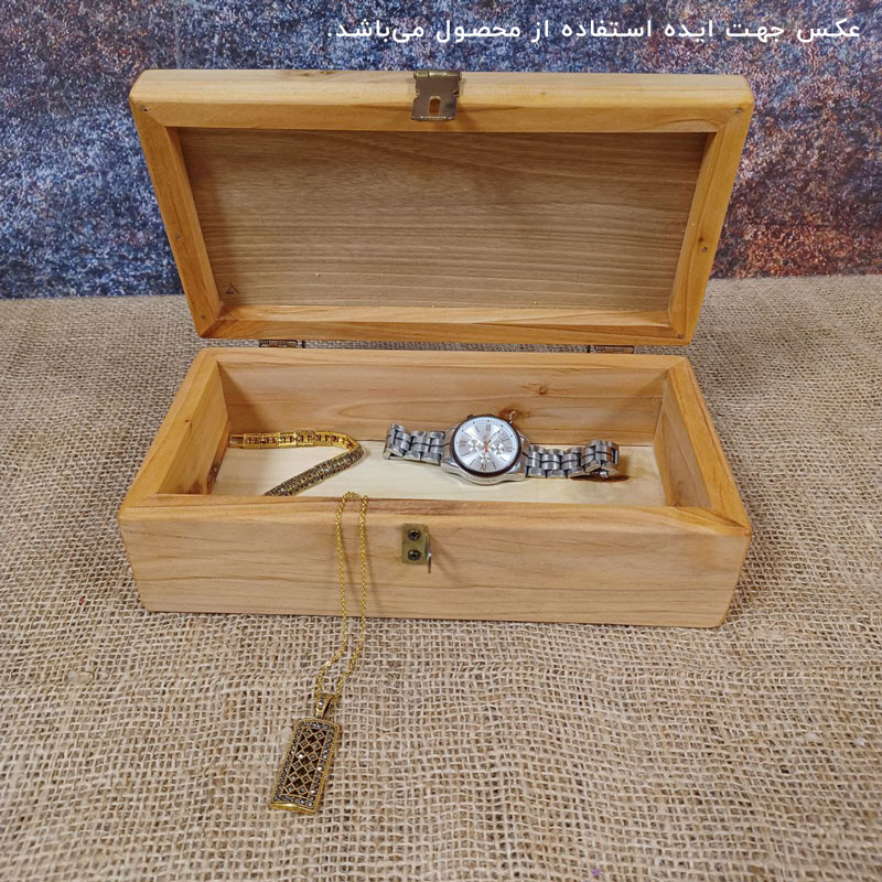 همان طور که گفته شده برای زیباتر شدن وسایل منزل از لوازم چوبی و تزیینی مختلفی همچون استفاده میکنیم. جعبه چوبی یک گزینه مناسب برای نگهداری زیورآلات، دکمه، مهره، منجوق، پولک، ملیله و... میباشد. در تولید این جعبه که مناسب نگهداری اکسسوری، یادگاری و حتی دیزاین و دکور است از چوب راش اعلا و درختان جنگلی استفاده شده است. لازم به ذکر است برای محافظت از این محصول از روغن چوب گیاهی استفاده شده که این پوشش دهی مقاومت محصول در برابر گرد و غبار، خط و خش، رطوبت و آب را افزایش داده است. با توجه به طبیعی بودن چوب، وجود ترک، گره و ... کاملا طبیعی است.