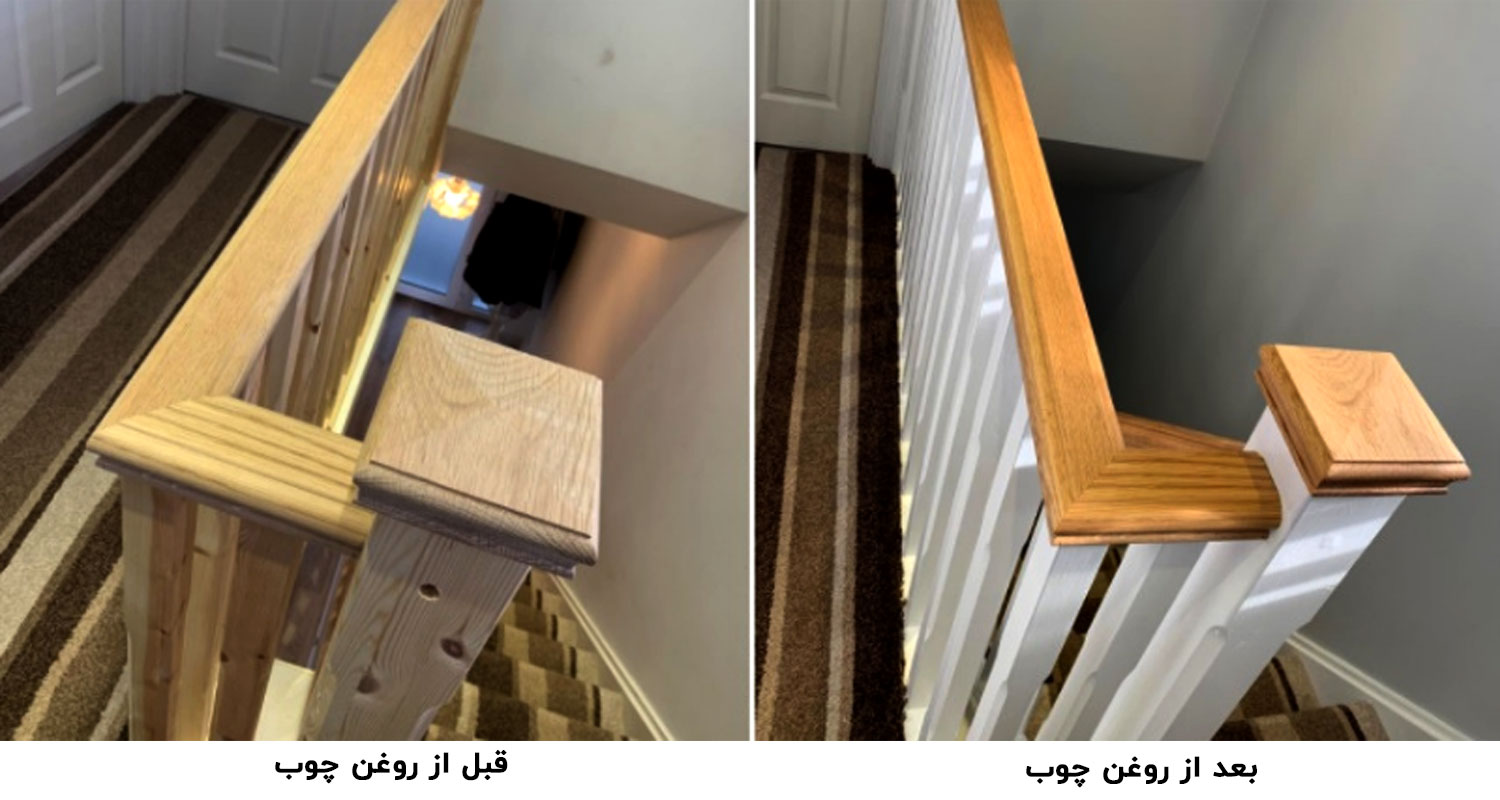 تصویر زیر قبل و بعد استفاده از روغن چوب رو بهمون نشون میده.