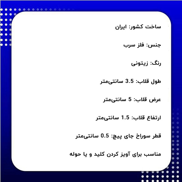 مشخصات فنی قلاب جا کلیدی دو پیچ