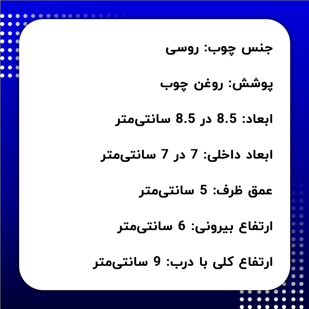 - ابعاد داخلی: 7 در 7 سانتیمتر