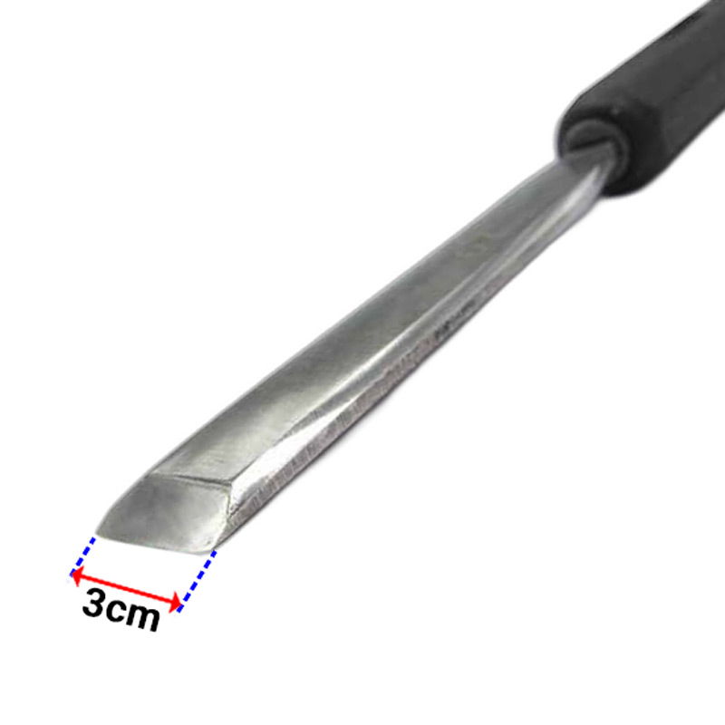 مغار ابزاری برای کنده کاری بر سطح چوب میباشد و از دو قسمت تیغه بلند و دسته تشکیل شده است. این نوع مغار چکش خور ساخت ایران است که از کیفیت و دوام بالایی برخوردار است. تیغه آن دارای کلگی و سری تیز و برنده میباشد که جهت استفاده ضربههایی بر قسمت انتهایی دستگیره وارد میشود تا کار کنده کاری انجام گیرد. مغار ظریف کاری تخت دارای دسته پلاستیکی میباشد. از مغار تخت برای کندن زمینه کار، سطوح صاف، خط انداختن خطوط راست، قائمه ساختن زوایای بیرونی، تمیز کاری، آماده سازی قطعات برش خورده برای اتصالات و کارهای ظریف استفاده میشود. در ادامه متن مشخصات فنی مغار تخت عرض 3 سانتیمتر ارائه میگردد.