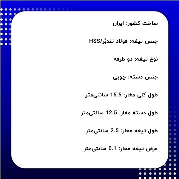 - عرض تیغه مغار: 0.1 سانتیمتر