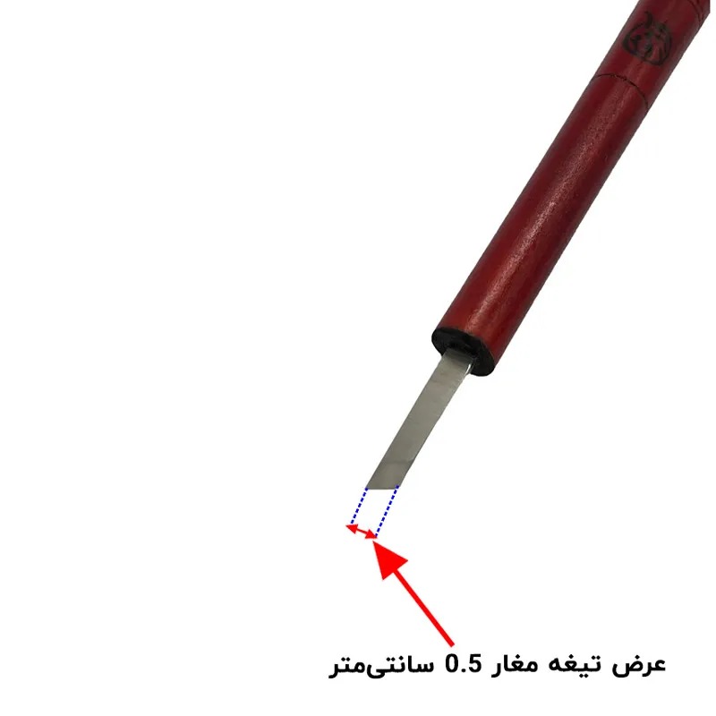 همانگونه که در قسمت قبل اشاره کردیم مغارها انواع مختلفی دارند که هر کدام کاربرد خاصی برخوردار میباشند. مغار در حالت کلی از دو قسمت تیغه و دسته تشکیل شده است. لازم به ذکر است که تیغه این مغار فولادی بوده و از کیفیتی بالایی برخوردار است. از دیگر مزیتهای مغار تخت سر کج دو طرفه قلمی عرض 0.5 سانتیمتر میتوان به جنس دسته مغارها اشاره نمود که چوبی است لذا هنگام کار دست دچار تعریق نمیشود و کار با آن راحت میباشد. در ادامه متن مشخصات فنی مغار تخت سر کج دو طرفه ارائه میگردد.