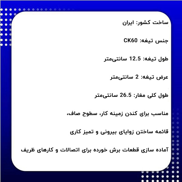 مغار تخت عرض 2 سانتیمتر منبت علاوه بر ویژگیهای ذکر شده، از مشخصات فنی زیر برخوردار میباشد:
