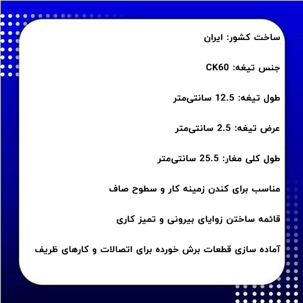 مغار تخت عرض 2.5 سانتیمتر منبت علاوه بر ویژگیهای ذکر شده، از مشخصات فنی زیر برخوردار میباشد: