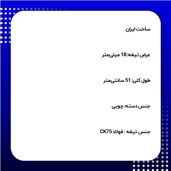مغار گلویی عرض 18 ساخت ایران است که دارای دسته چوبی مقاوم می باشد. سایر مشخصات فنی محصول به شرح زیر است: